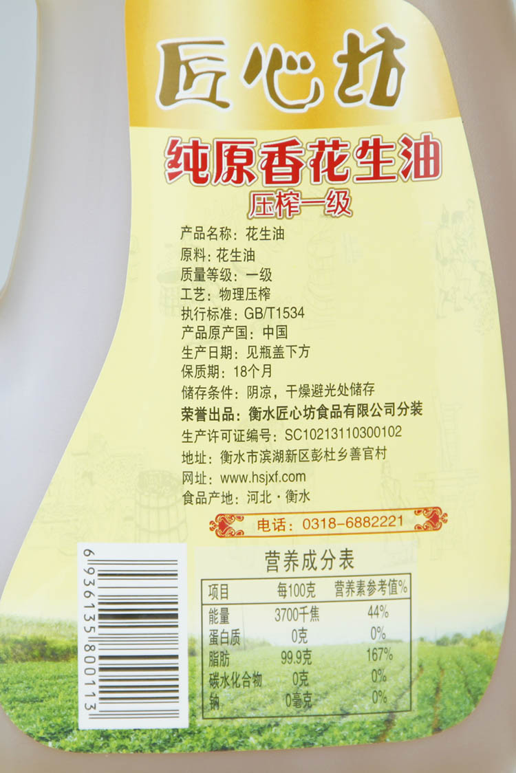 匠心坊純原香花生油2升物理壓榨一級植物油2L小瓶輕便裝