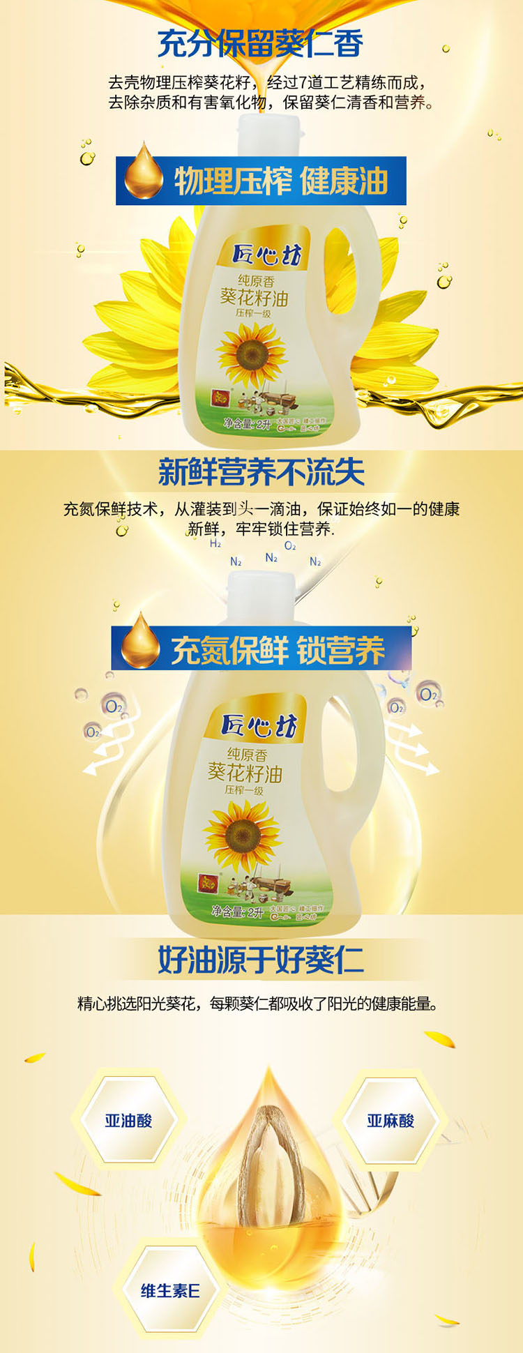 匠心坊2升小瓶裝葵花籽油物理壓榨一級(jí)2L*4不漏油嘴一箱裝